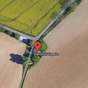 Kommend von Pfinztal Berghausen rechts in die Wöschbacherstrasse weiter geradeaus sann kommt ein Feldweg, diesen folgen. Ca 300 bis 500 m kommt sie Kapelle
