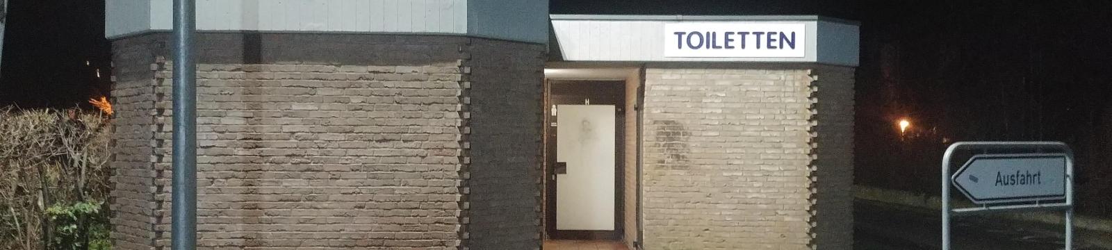 Kleines Toilettenhäuschen auf dem Parkplatz hinter der Brunnenstraße 66.