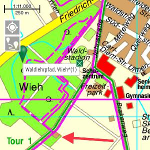 Hallo hinterm Sportpark kommt der Waldlehrpfad Wieh,,dort ist ein schotterplatz für Autos oder Mann / Frau verschwindet im Wald!