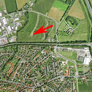 Nach ca. 1,3km kommt eine Ampelkreuzung. Dort rechts in das Industriegebiet abbiegen ;