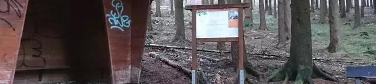 Großer Parkplatz mit einigen Wegen in den Wald, wo man sich vergnügen kann.