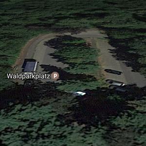 Der Parkplatz ist mit Wald umgeben, ist abgeschirmt, nicht einsehbar, nicht beleuchtet, es gibt PKW-Parkplätze, Plätze - lang genug für Campingwagen.