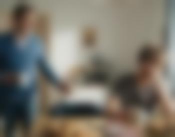 Die Tür geht auf und die Oma betritt das Büro.