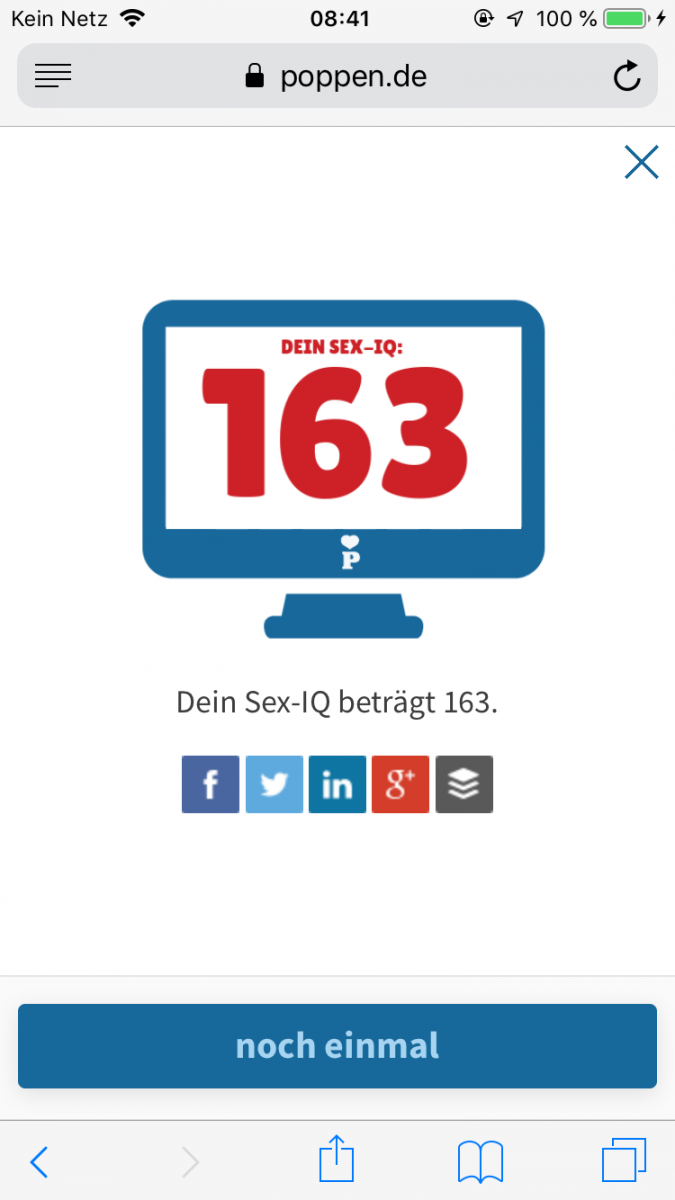 Albert Einstein hatte angeblich einen IQ zwischen 160 und 180. Doch was wir nicht wissen: War der kultige Physiker auch eine Granate im Bett?! Mit unserem neuen, lustigen Quiz-Format geben wir allen Poppen.de-Mitgliedern die einmalige Chance, ihren persönlichen Sex-IQ zu testen. Wer hat den höchsten Sex-IQ in der Community? Wer kennt sich am besten mit der wunderbaren Welt des Poppens aus?