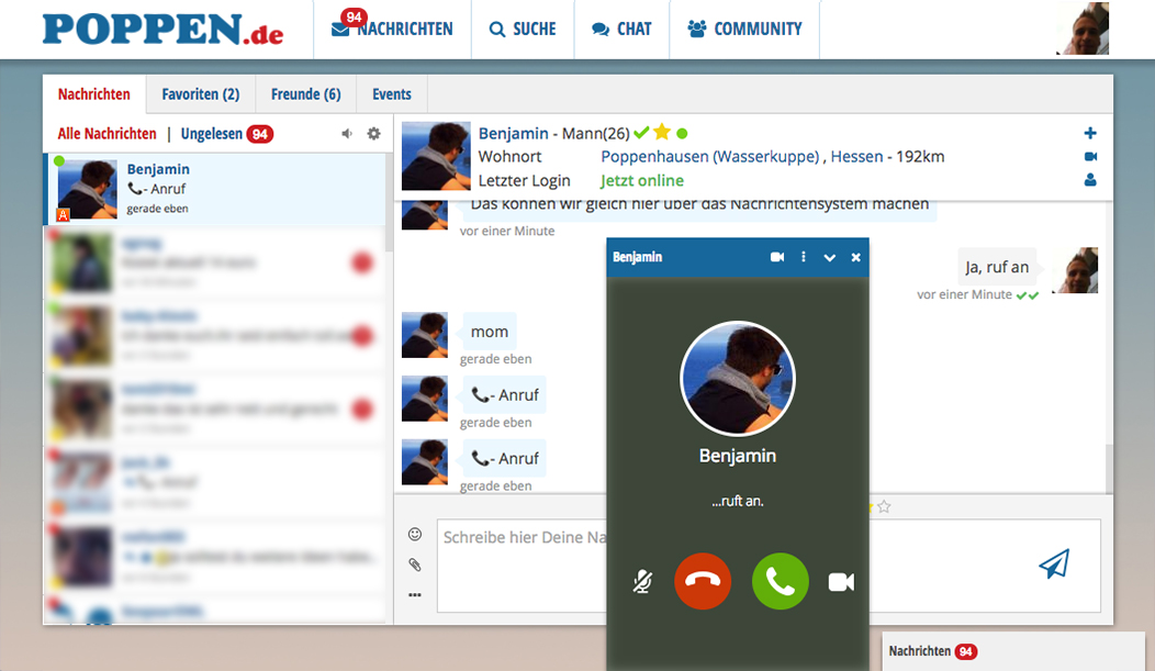 Auch die neue Videochat-Funktion im Nachrichtensystem ist ne coole Sache. Sehr cool sogar! Damit steht Dir für die direkte Kommunikation mit anderen Mitgliedern nichts im Wege. Ein Klick und Du siehst sofort, mit wem Du es zu tun hast. Niemand muss mehr auf vermeintliche Fakes reinfallen. So lässt sich von Angesicht zu Angesicht flirten und Dates klar machen. Du kannst auch Deine körperlichen Vorzüge zeigen oder durch tiefe Blicke in freundliche Augen die Schmetterlinge im Bauch zum Leben erwecken… Mit einer Video-Telefonie lässt sich wahlweise auch ohne Bild-Videoübertragung Small Talk oder Dirty Talk halten. Ob Bild oder nur Ton - das kann von Dir nach Lust und Laune ein- und abgestellt werden. (Smartphones und Tablets unterstützen diese neue Funktion noch nicht.)