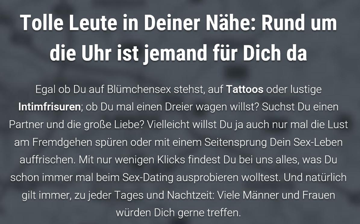 Suggeriert die Homepage ja auch ... "eine Website für Sex-Dating ... mit wenigen Klicks finde ich hier alles was ich schon immer mal ausprobieren wollte ..."