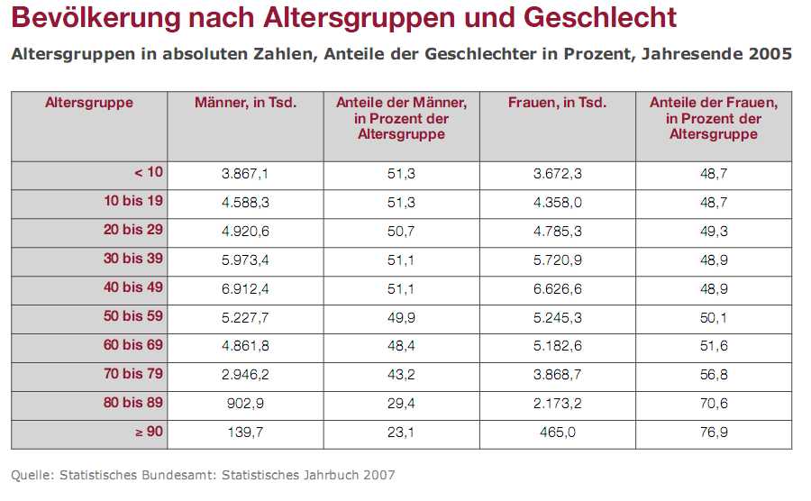 Denn Frauen sind nämlich - zumindest in Deutschland - gar nicht so in der Überzahl, erst ab einem "gewissen" Alter...