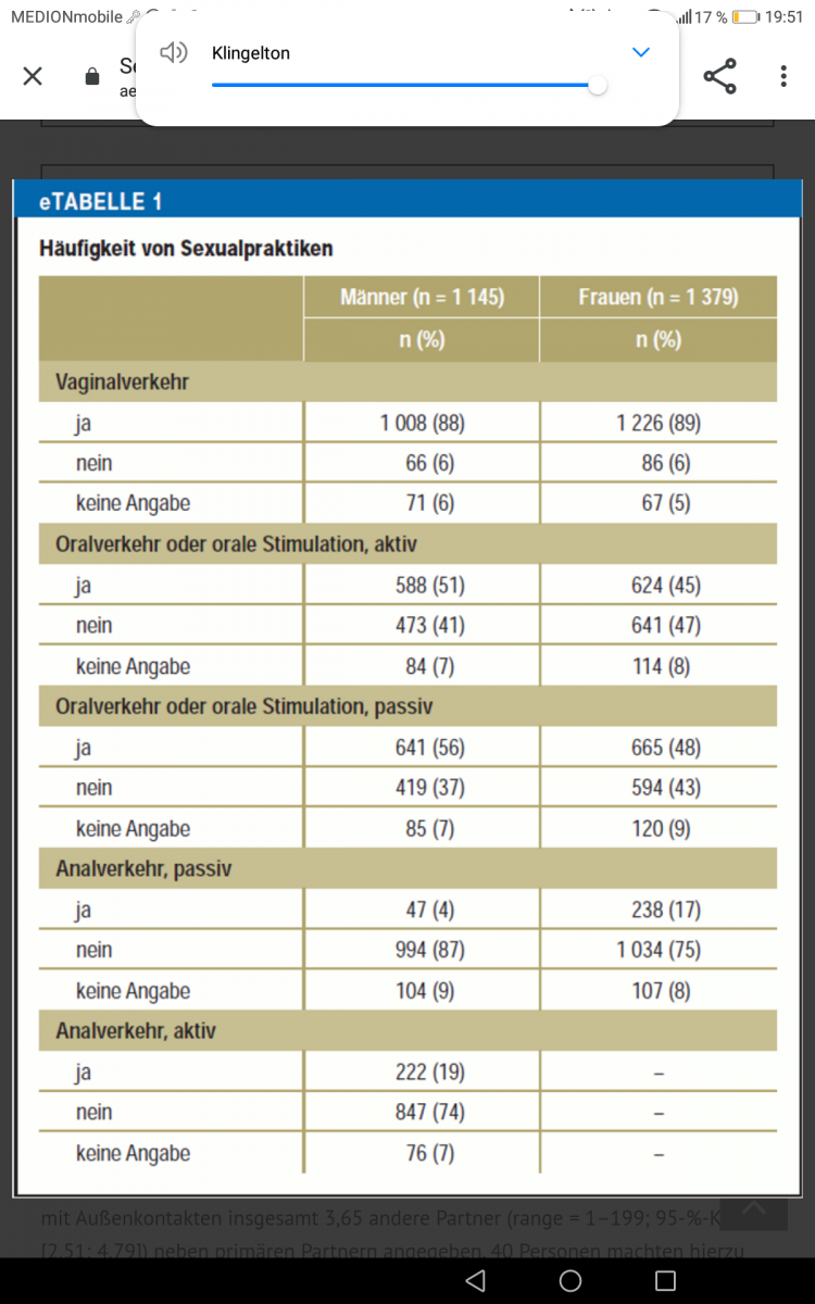 Um den völlig unwissenschaftlichen Vermutungen - v.a. von Babs 😂 - mal etwas männlich seriös Recherchiertes entgegen zu halten, hier die Ergebnisse einer Studie der TU Braunschweig von 2017 (Quelle: Dt. Ärzteblatt), wonach sich Männer und Frauen miteinander in Punkto Analverkehr eher wenig unterscheiden. Beide Geschlechter hatten zu 19 (m) bzw. 17 (w) % Analverkehr.
