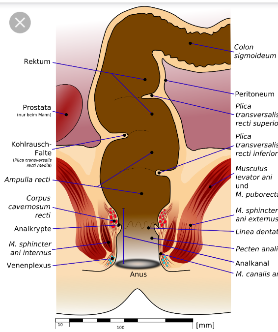 Tiefe und Durchmesser anal