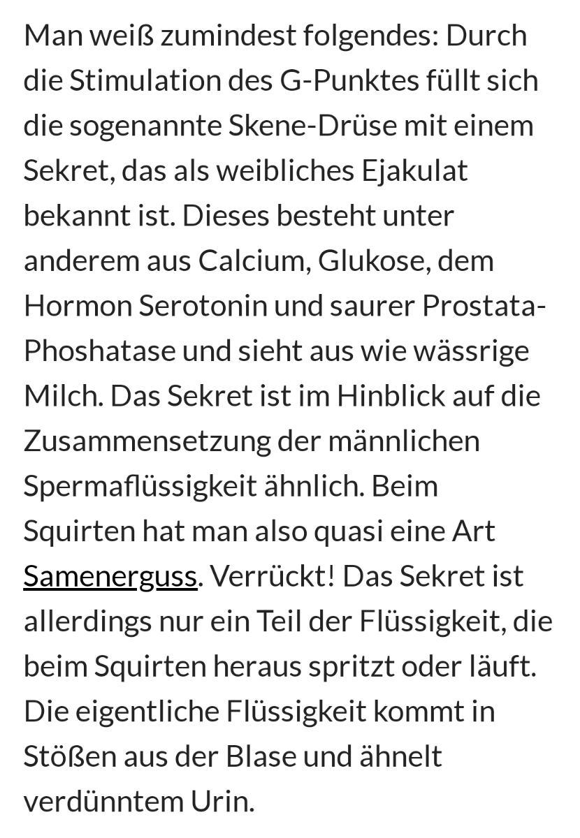 Ei**** Geschrieben August 31, 2023 Ich bisher 3x das Glück eine Frau kennenzulernen, die squirten "konnte". Ich denke manN muss es können und Frau muss es zulassen, dass alles fließt. Ich habe es immer genossen. Am liebsten beim fingern und gleichzeitigen lecken Am 27.8.2023 at 17:14, schrieb ars-amandi: Nicht dein Ernst oder? Lt. www stimmt dass nicht so ganz. Es ist teilweise Urin und teilweise so eine Art "prostata" Sekret.