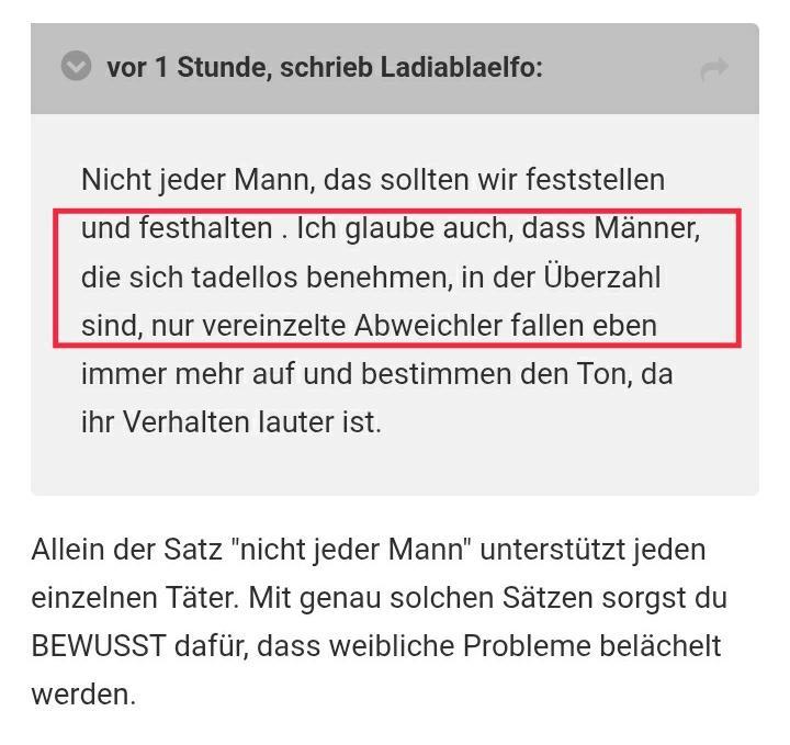 Und genau darum geht es hier doch auch: nicht um ein „alle Männer sind so“, sondern darum, dass bestimmte Erfahrungen existieren und angesprochen werden.